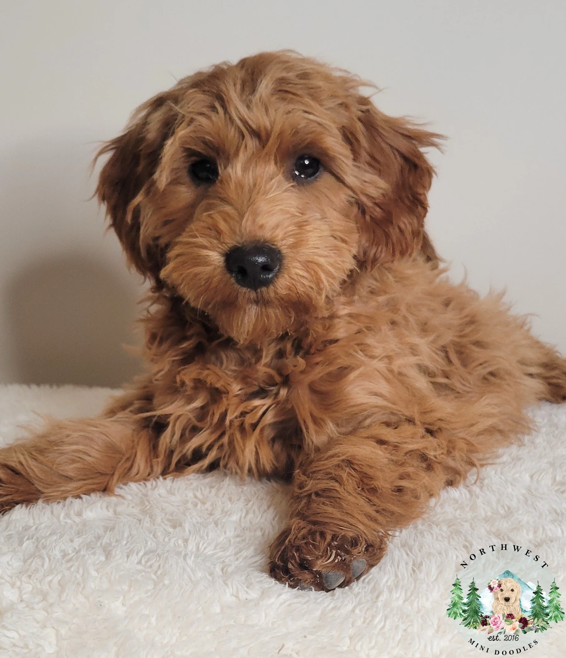 Dark Red male with wavy coat and cute brown nose. mellow baby boy who loves cuddles. Do not miss out on this great boy being your companion!