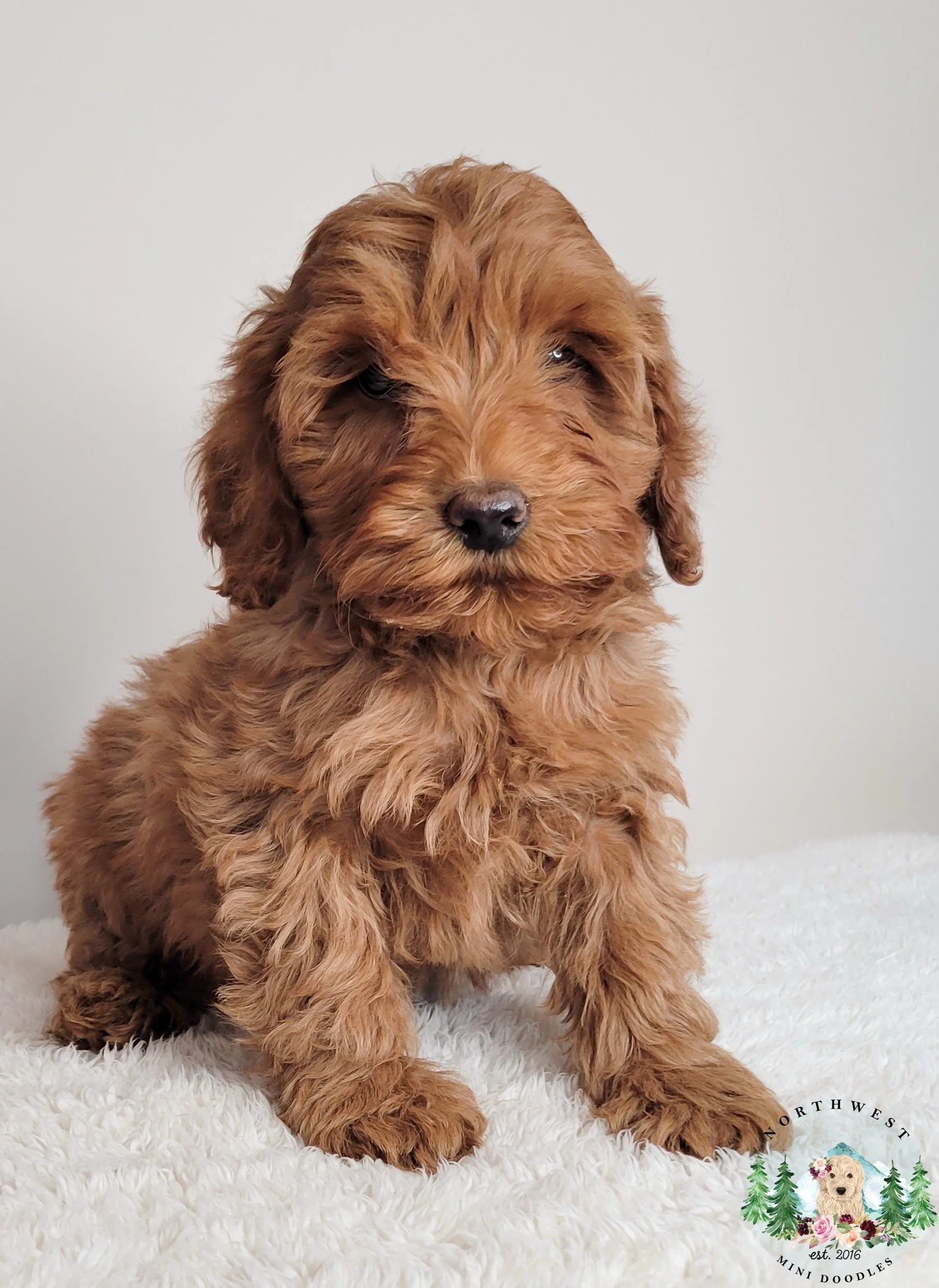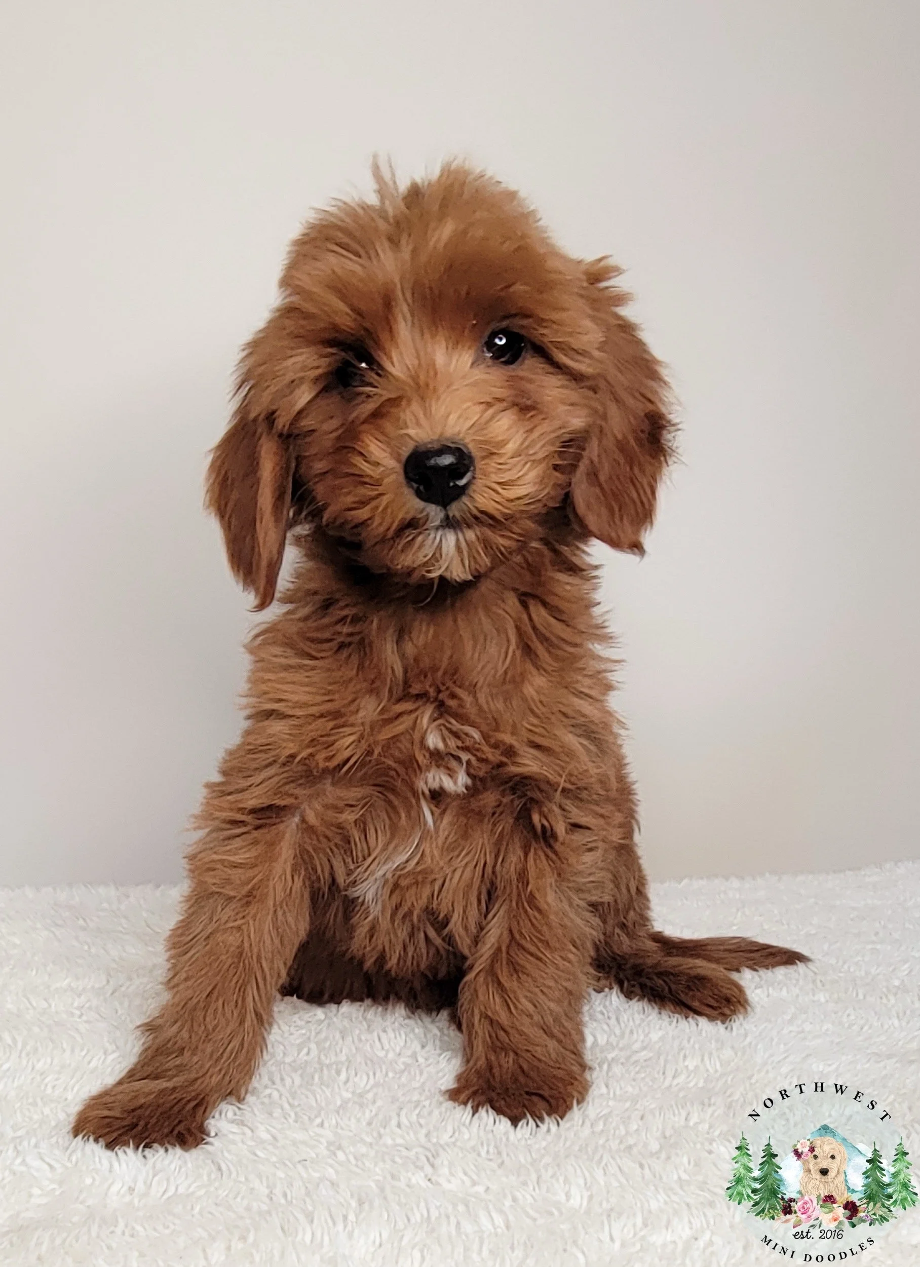 “A” - Dark Red colored male with wavy coat. sweet, playful, baby boy who loves cuddles. Do not miss out on this great boy being your companion!